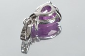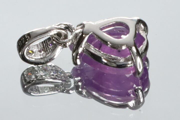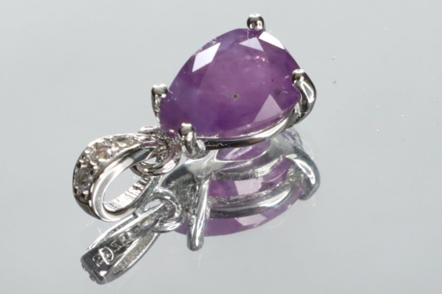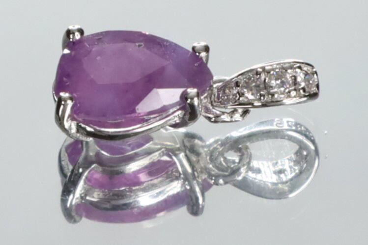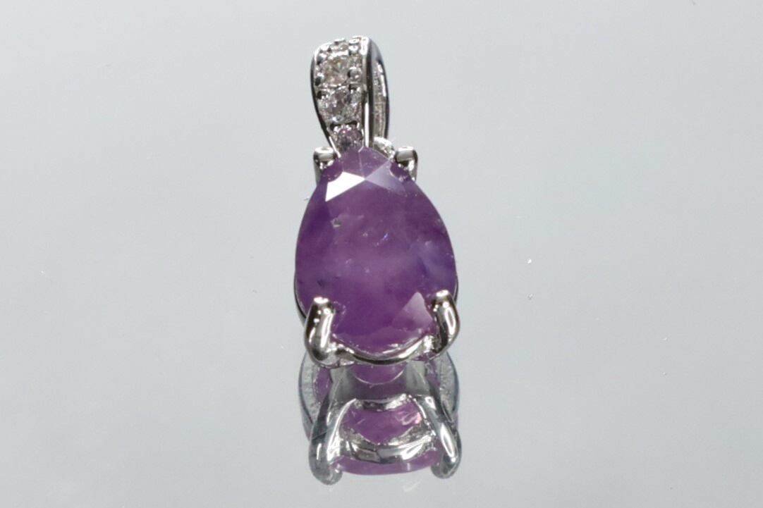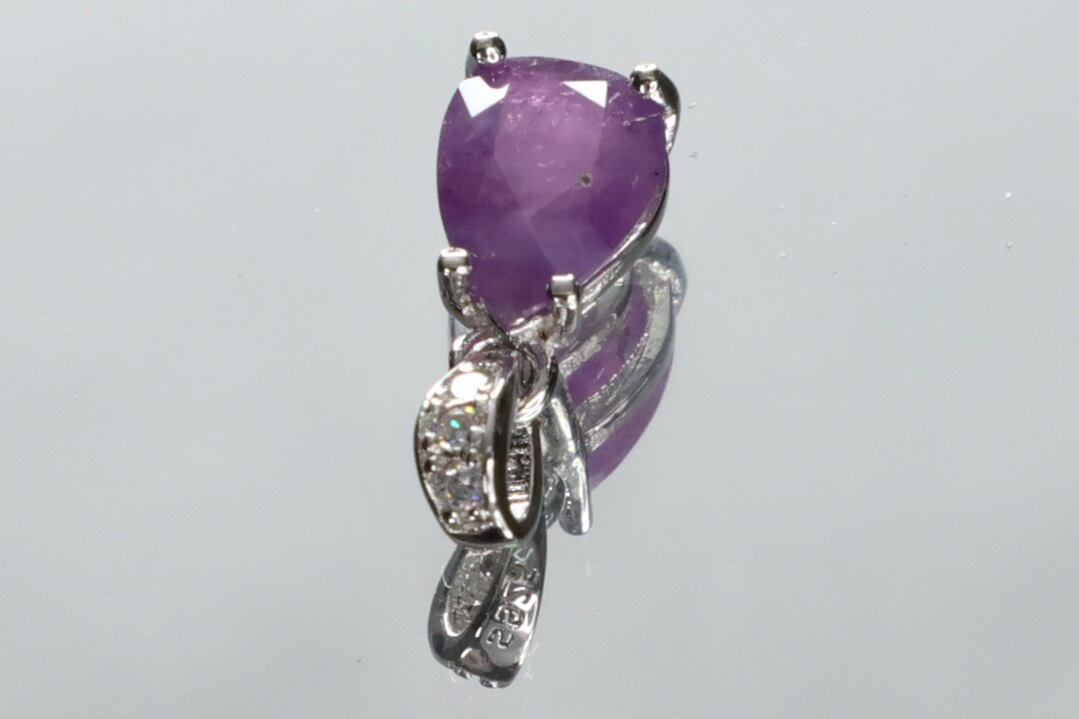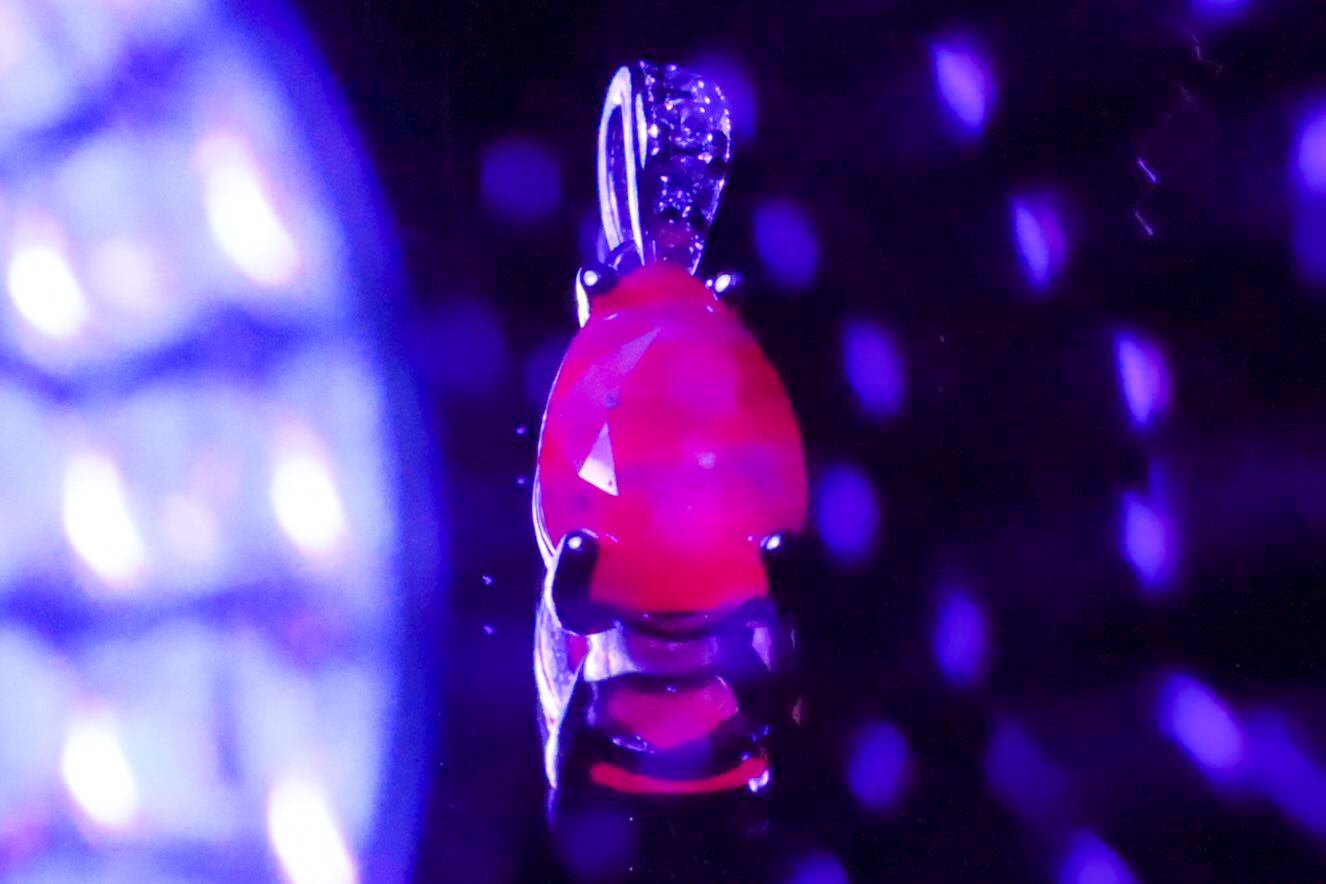半透明で、天然石特有のインクルージョン、キズなど画像にありますようにありますが、ピンキッシュパープルの色味や光沢が綺麗なサファイアで、ブラックライトを使用すると、メイン画像のような綺麗なピンキッシュレッドの蛍光性もお楽しみいただけます。