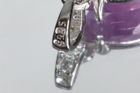 ペンダントトップはシルバー925(スターリングシルバー)で刻印も有ります。また、幾つか、コチラは人工になりますがキュービックジルコニアがはめられていて、小さいので中深くみないとわかりませんが、手持ちライトをあてると、色調が異なる綺麗なイリディセント・フラッシュが見られる時があります。