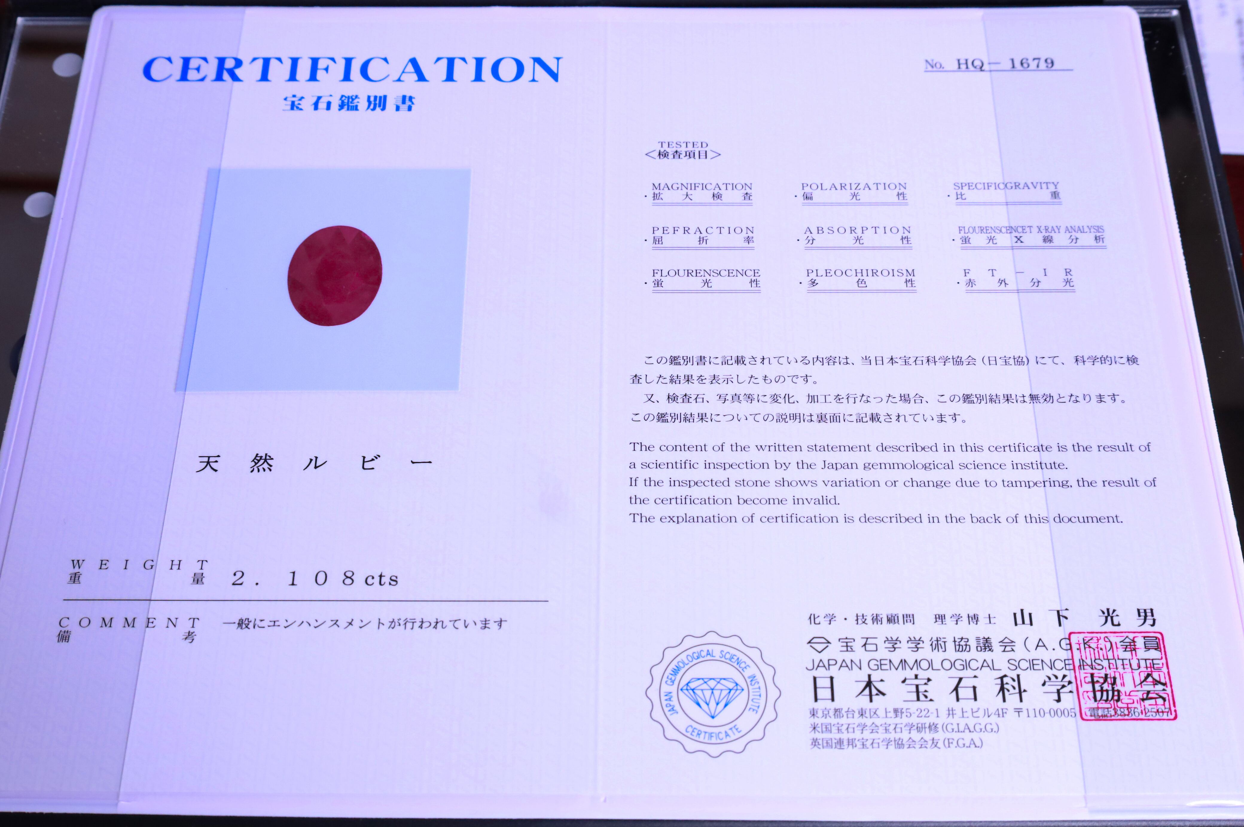 ※画像の鑑別書は同じロットの別個体のもので、コチラには付属しません。
